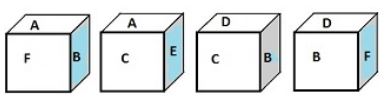 From the positions of a cube shown below, which letter will be on the face opposite to face with 'A'?