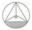 An equilateral triangle is inscribed in a circle of radius 1 unit. The area of the shaded region, in square unit, is