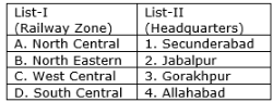 Match List-I with List-II and select the correct answer using the code given below the Lists: