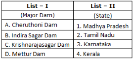 Match List – I with List – II and select the correct answer using the code given below the Lists :