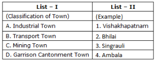 Match List – I with List – II and select the correct answer using the code given below the Lists :
