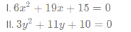 In these questions, two equations numbered I and II are given. You have to solve both the equations and select the appropriate option.