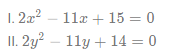 In these questions, two equations numbered I and II are given. You have to solve both the equations and select the appropriate option.