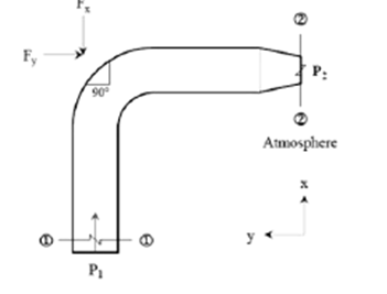 Water flows through a 90 ° bend in a horizontal plane as depicted in the figure.