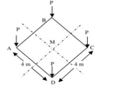 Consider a square-shaped area ABCD on the ground with its Centre at M as shown in the figure. Four concentrated vertical load of P=5000 kN are applied on this area, at each corner.