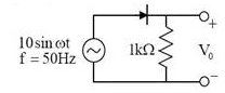 The output V0 of the diode circuit shown in the figure is connected to an averaging DC voltmeter. The reading on the DC voltmeter in Volts, neglecting the voltage drop across the diode, is ______.