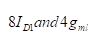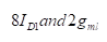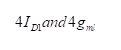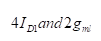 Two n-channel MOSFETs, T1 and T2, are identical in all respects except that the width of T2 is double that of T1. Both the transistors are biased in the saturation region of operation, but the gate overdrive voltage (VGS-VTH) of T2 is double that of T1, where VGS and VTH are the gate – to – source voltage and threshold voltage of the transistors, respectively. If the drain current and transconductance of T1 are ID1 and gm1 respectively, the corresponding values of these two parameters for T2 are