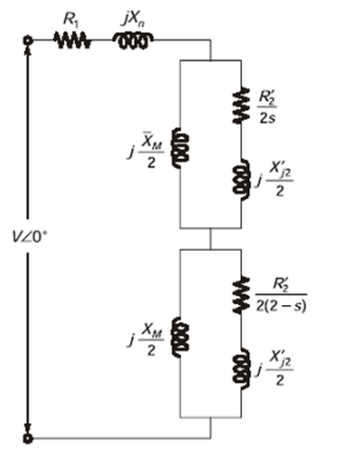 The equivalent circuit of a single-phase induction motor is shown in the figure, where the parameters are   and s is the slip. At no-load the motor speed can be approximated to be the synchronous speed. The no-load lagging power factor of the motor is ________ (upto 3 decimal places).