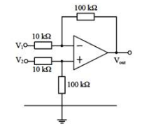 In the circuit below, the operational amplifier is ideal. If V1 = 10 mV and