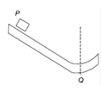 Block P of mass 2 kg slides down the surface and has a speed 20 m/s at the lowest point, Q where the local radius of curvature is 2 m as shown in the figure. Assuming  the normal force (in N) at Q is ________ (correct to two decimal places).