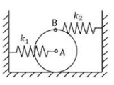 A uniform thin disk of mass 1 kg and radius 0.1 m is kept on a surface as shown in the figure. A spring of stiffness k1 = 400 N/m is connected to the disk center A and another spring of stiffness k2 = 100 N/m is connected at point B just above point A on the circumference of the disk. Initially, both the springs are unstretched. Assume pure rolling of the disk. For small disturbance from the equilibrium, the natural frequency of vibration of the system is _________ rad/s (round off to one decimal place).