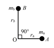 Two masses A and B having mass ma and mb, respectively, lying in the plane of the figure shown, are rigidly attached to a shaft which revolves about an axis through O perpendicular to the figure. The radii of rotation of the masses ma and mb are ra and rb, respectively. The angle between lines OA and OB is 90o. If ma = 10 kg, mb = 20 kg, ra = 200 mm and rb = 400 mm, then the balance mass to be placed at a radius of 200 mm is _________ kg (round off to two decimal places).