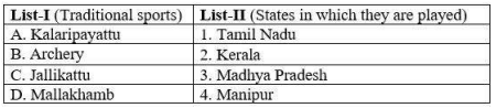 Match List - I with List - II and select the correct answer using the codes given below the lists
