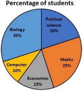 The given pie chart shows percentage of students who opted for different subjects as additional subject. If total number of students in the college is 5000, find the number of students who opted for maths or economics.