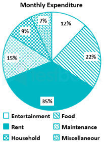 The pie chart shows monthly expenditure of Suresh on various items. If he has to pay Rs. 70000 as rent, then calculate the amount spent on entertainment.