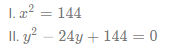 In these questions, two equations numbered I and II are given. You have to solve both the equations and select the appropriate option.