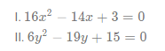 In these questions, two equations numbered I and II are given. You have to solve both the equations and mark the appropriate answer. Give answer