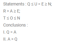 In these questions, relationship between different elements is shown in the statements. The statements are followed by two conclusions. Study the conclusions based on the statement and select the appropriate answer. Give answer :