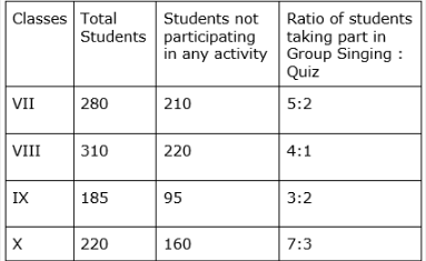 The data of the total students in a class along with the data of those who do not take part in any activities is given. There are only two activities in the class and the ratio of students taking part in these 2 activities is also given below.