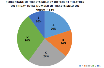Percentage of tickets sold by different theaters on Friday Total Number of tickets sold on Friday = 850