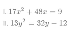 In each of these questions, two equations are given. You have to solve these equations and nd out the values of x and