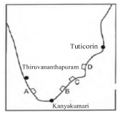 The given fi gure shows a portion of Southern India. The proposed site Kudankulam for the construction of two 1000 MW nuclear power plants has been labelled in the map as