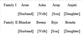 There are two families enjoying dinner around a round table, facing its centre. The distance between any neighbouring people is same . The details of the two families are as follows: