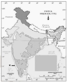 Consider the following map and identify the type of “Major Soil type” marked as “X” from the options given below: