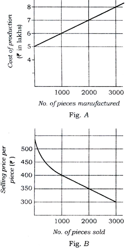 The manufacturing cost and projected sales for a product are shown in the above figures A and B respectively. What is the minimum number of pieces that should be manufactured to avoid a loss?