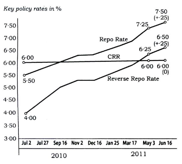 The graph given below indicates the changes in key policy rates made by the Central Bank several times in a year: