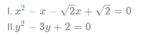 In each of the following questions, two equations I and II have been given. Solve these questions and answer
