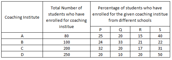 In coaching institute B, the total number of students who have enrolled from schools P and R together is what percent less than the ‘total number of students enrolled from schools Q and S together ?