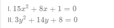 In these questions, two equations numbered I and II are given. You have to solve both the equations and mark the appropriate option.