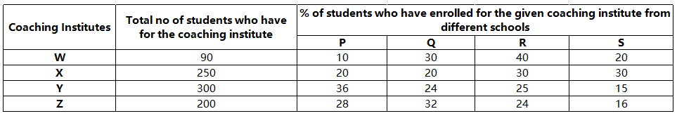 In coaching institute Z, the total number of students who have enrolled from schools R and S together is what percent less than the total number of students enrolled from schools P and Q together ?