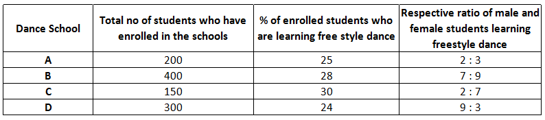 What is the respective ratio between the total number of male students learning freestyle in schools A and C together and the total number of female students learning the same in the same schools together ?