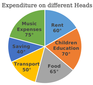 Monthly expenditure of a family on different heads is shown in the following pie chart. The family earns ₹10,08,000 every month.