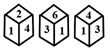 Three different positions of the same dice are shown, the six faces of which are numbered from 1 to 6. Select the number that will be on the face opposite to the face having the number '5'.