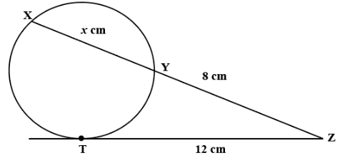 In the figure, XYZ is a secant. and ZT is a tangent to the circle at T. If TZ = 12 cm and YZ = 8 cm, then find the length of XY