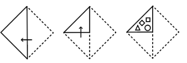 The sequence of folding a piece of paper and the manner in which the folded paper has been cut is shown in the following figures. How would this paper look when unfolded?