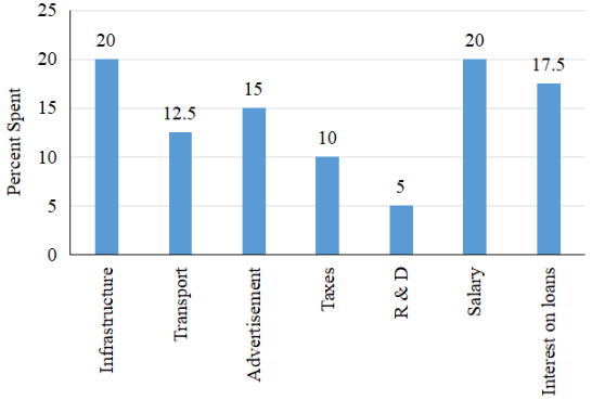 if the interest on loans amounted to ₹3.15 crores. then the total amount of expenditure on salary, taxes and infrastructure is: