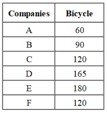 The table given below shows the number of bicycle sold by six companies.