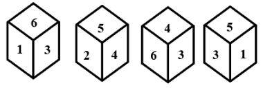 Four different positions of the same dice are shown, the six faces of which are numbered 1 to 6. Select the number that will be on the face opposite to the one showing '4'.