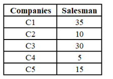 The table given below shows the number of salesman in five companies.