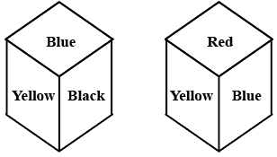 Two different positions of the same dice are shown, the six faces of which are coloured Red, Green, Blue, Yellow, Black, White. Select the colour that will be on the face opposite to the one coloured Black.