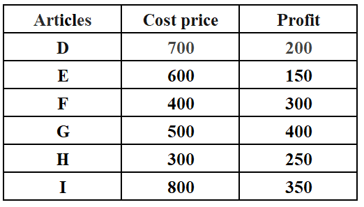 The table given below shows the cost price and value of profit of 6 articles.