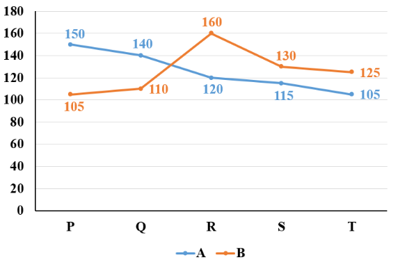 The line chart given below shows the number of pencil sold by two shopkeepers A and B in 5 mouths.