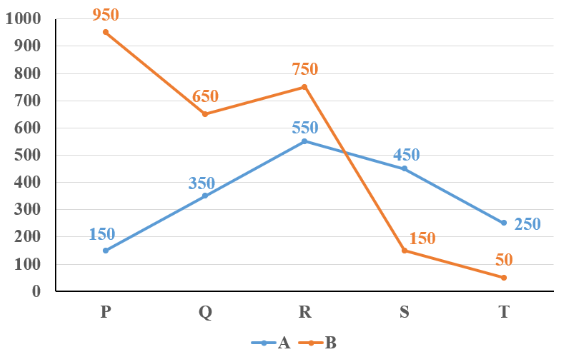 The line chart given below shows the sales of two companies A and B in 5 years.