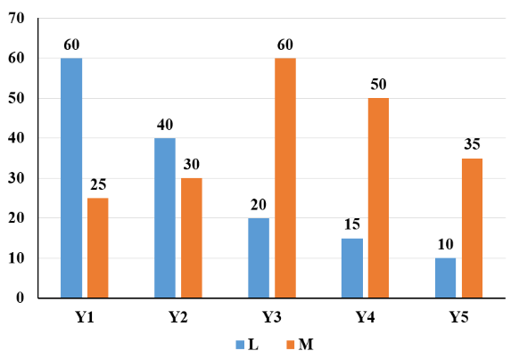 The bar graph given below shows production of truck by two companies L and M in 5 years.