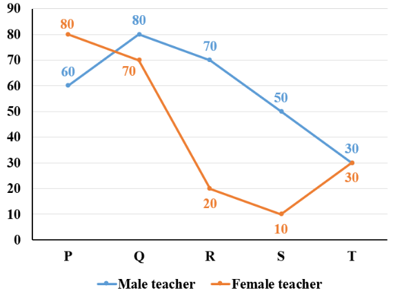 The line chart given below shows the number of male teacher and female teachers in 5 schools.