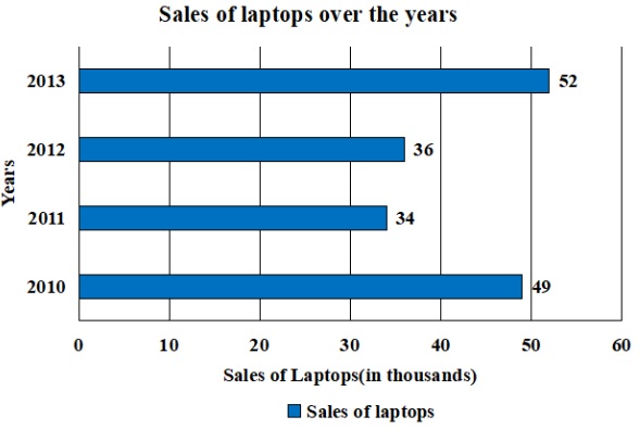 The bar-chart shows the sales of laptops (in thousands) over a period of four years.